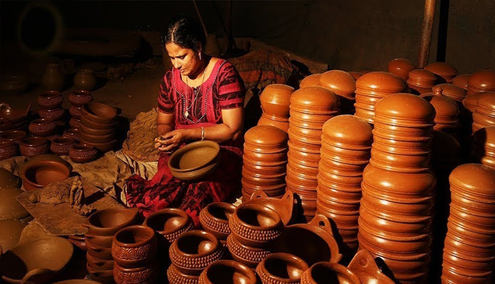When steel pots became widely accepted, clay pot sales declined thus threatening the livelihood of people of the village. K B Jinan, an activist cum designer intervened. He initiated Kumbham handicraft project which became a creative inspiration for the skilled artisans.